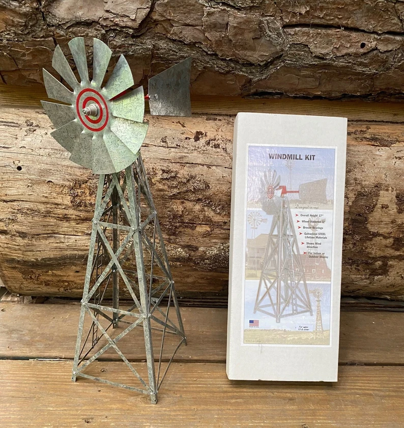 A disassembled 17″ Aermotor Desktop Ornamental Windmill. A great kit for the kids to assemble as a desktop and home decor option.